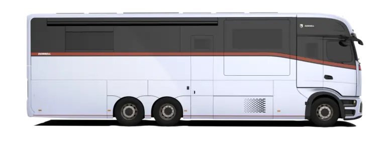 Beim Exterieur verfolgt Dembell einen ungewöhnlich konsequenten Designansatz. Eine 9,5 m lange Aluminium-Seitenplatte deckt Griffe, Scharniere und Fenster ab. Das Ergebnis ist eine sehr aufgeräumte, beinahe monolithische Seitenansicht, die aerodynamisch wie optisch überzeugt. 2025 stehen neben dem klassischen hauseigenen Look zwei neue Außenlinien zur Wahl, gestaltet von Pininfarina. Trotz dieser Designvielfalt bleibt die technische Basis identisch – ein Plus für alle, die auf bewährte Substanz setzen.