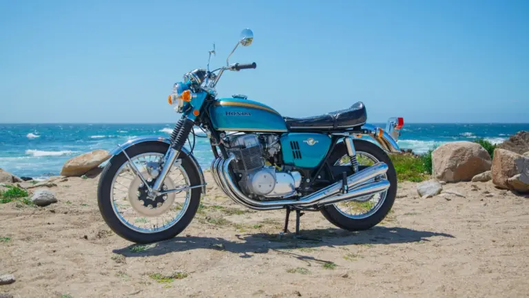 Die Zahlen unterstreichen die Bedeutung dieses Prototyps: etwa 51 kW Leistung bei 8.500/min und ein maximales Drehmoment von rund 60 Newtonmetern bei 7.000/min. Die Spitzengeschwindigkeit lag bei circa 201 km/h, das Trockengewicht bei 218 Kilogramm. Die vordere Scheibenbremse und hintere Trommelbremse kombinierten Fortschritt mit Pragmatismus, ergänzt durch einen 19-Liter-Tank für mehr Reichweite. Besonders entscheidend war die obenliegende Nockenwelle, die neue Maßstäbe in Laufkultur und Wartungsfreundlichkeit setzte. Als erstes Mainstream-Modell mit diesen Features veränderte die CB750 das Bild von Geschwindigkeit und Alltagstauglichkeit. Sie folgte auf die CB450 als Hondas stärkstes Straßenmodell und wurde später durch die CBX750 abgelöst. Die Baureihe hielt bis 2008.