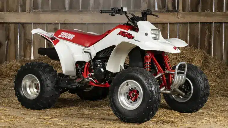 Die legendäre Honda TRX250R Fourtrax von 1989 steht in einer Scheune – ein Kult-ATV für Technik-Fans. (Foto: Hersteller)