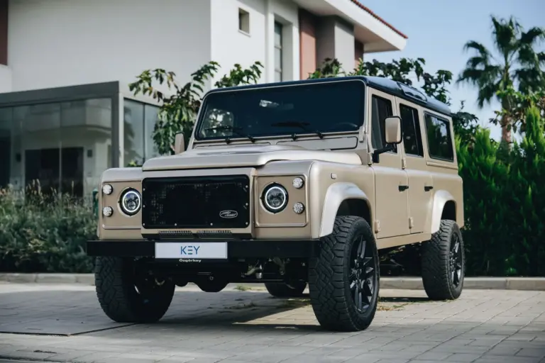 Der Land Rover Defender 110 aus 1991 verbindet Tradition und Gegenwart. Beige Mica, 3,5‑Liter‑V8, manuelle Schaltung und der technische Aufbau bilden die Basis. Details wie Lederinterieur, Flexiteek‑Flächen, LED‑Licht, elektrische Fensterheber, digitale Klimasteuerung, Vierfach‑Auspuff, 48,3‑cm‑Räder, SilentCoat‑Dämmung und Marshall‑Soundsystem erhöhen Komfort und Stil. Es ist ein Fahrzeug, das als kulturelles Artefakt und Reisebegleiter dient und derzeit erhältlich ist.