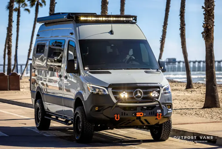 Das Chassis ist nicht nur Sprinter 4×4, sondern mit einem Agile Off-Road RIP Kit Fahrwerk aufgerüstet, dazu kommen Agile Overlander HD-Felgen und grobstollige All-Terrain-Reifen. Unterfahrschutz für das Differenzial, zusätzliche Skidplates sowie ein CAtuned-Stoßfänger mit Warn-Seilwinde zeigen deutlich, wohin die Reise geht: in Regionen, in denen Schlaglöcher größer und Straßenbegrenzungen seltener werden.